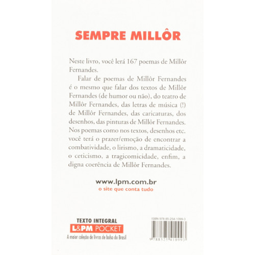 Este livro apresenta ao leitor 167 poemas de Millôr Fernandes. Nos textos há a combatividade, o lirismo, a dramaticidade, o ceticismo, a tragicomicidade, enfim, a coerência de Millôr Fernandes.